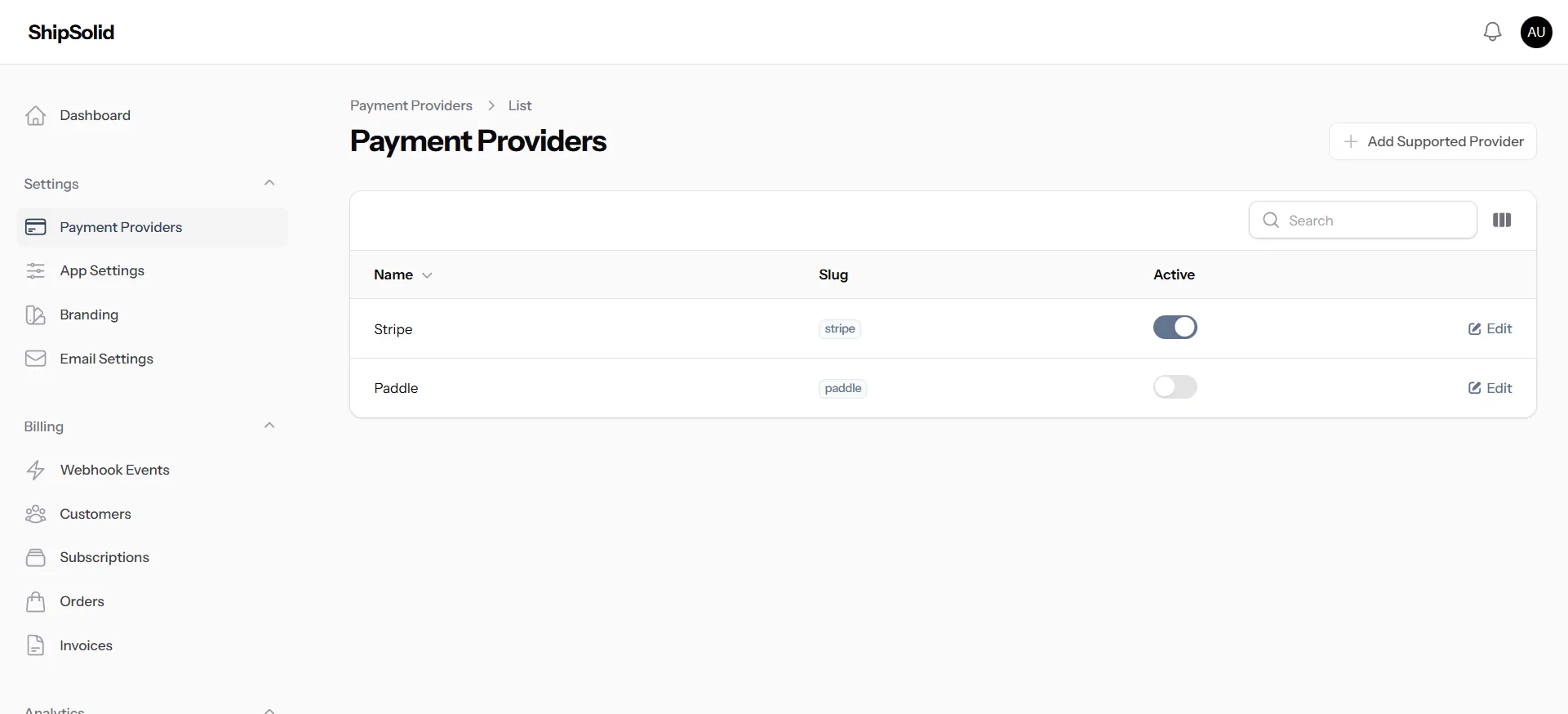 Enable and manage Stripe/Paddle providers with clear operational controls.